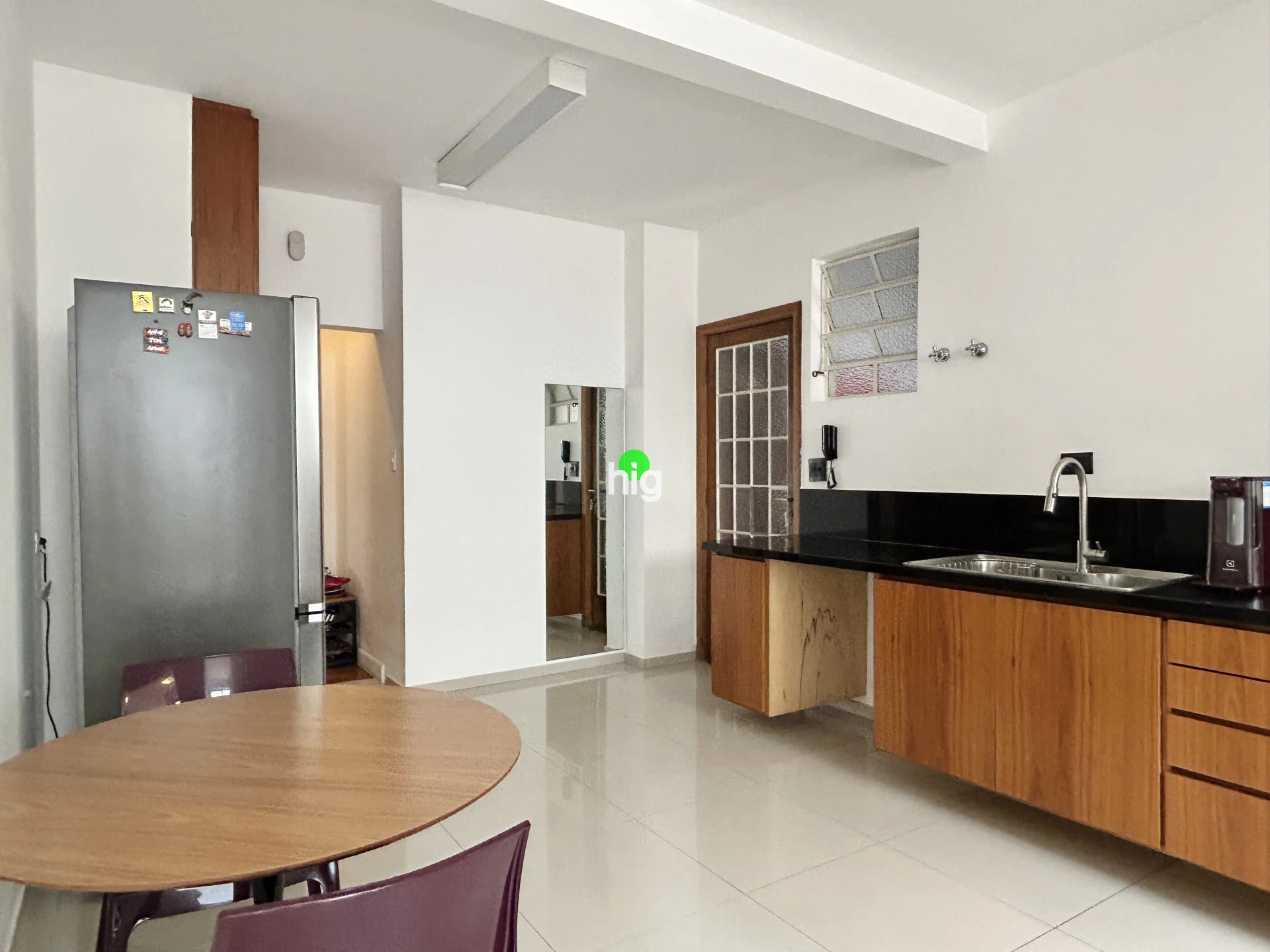 A área social é ampla e acolhedora, enquanto a cozinha espaçosa comporta uma mesa de refeições e é equipada com eletrodomésticos de qualidade. A área de serviço é completa, funcional e bem dimensionada.