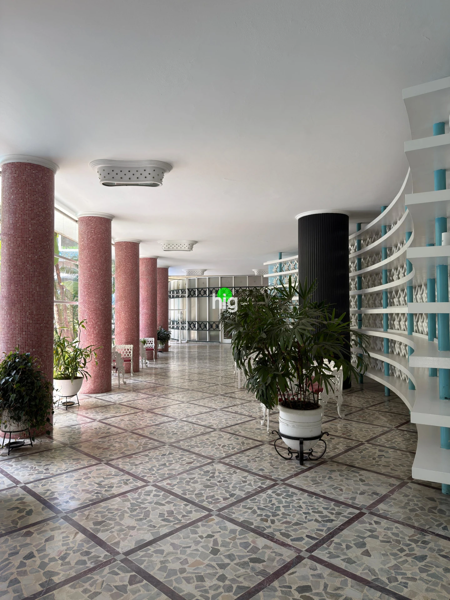 Implantado em um terreno generoso e com planta em “L”, o Bretagne possui um jardim tropical no térreo, áreas de convivência, incluindo uma das primeiras piscinas de grande porte projetadas por Artacho Jurado.