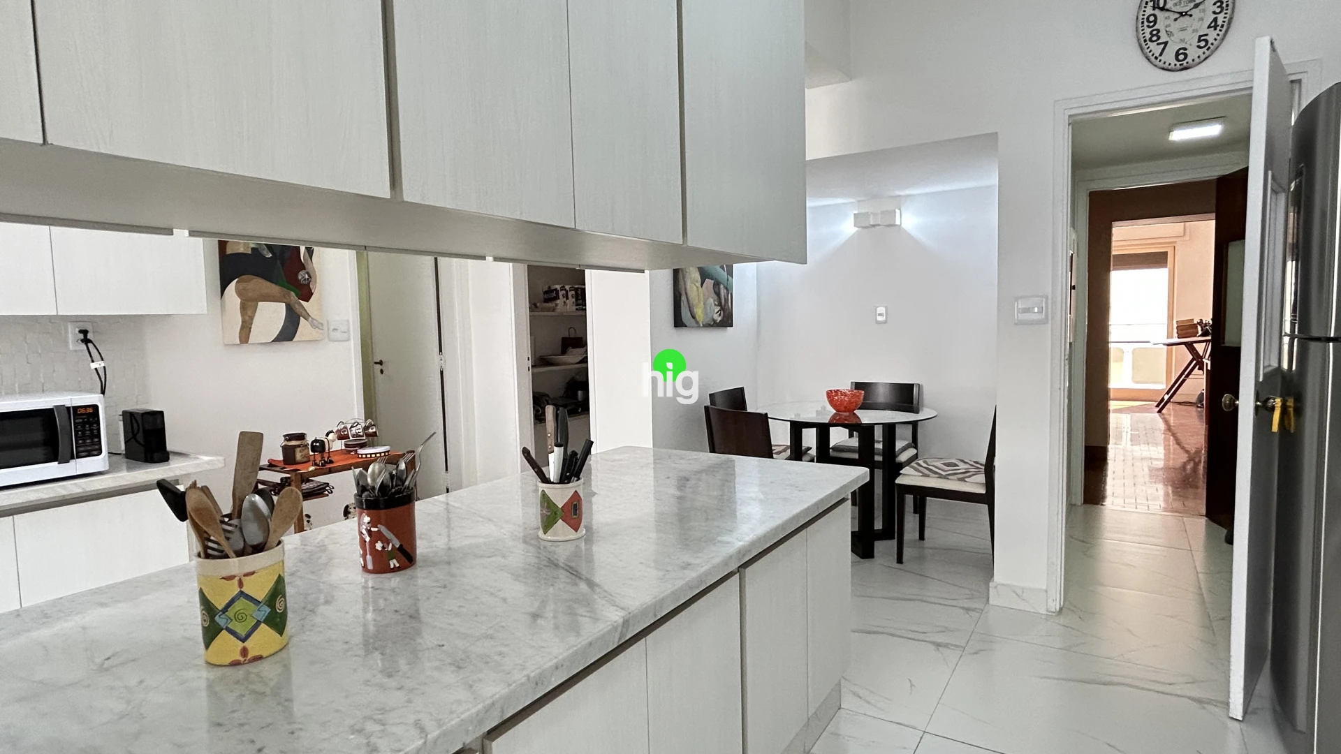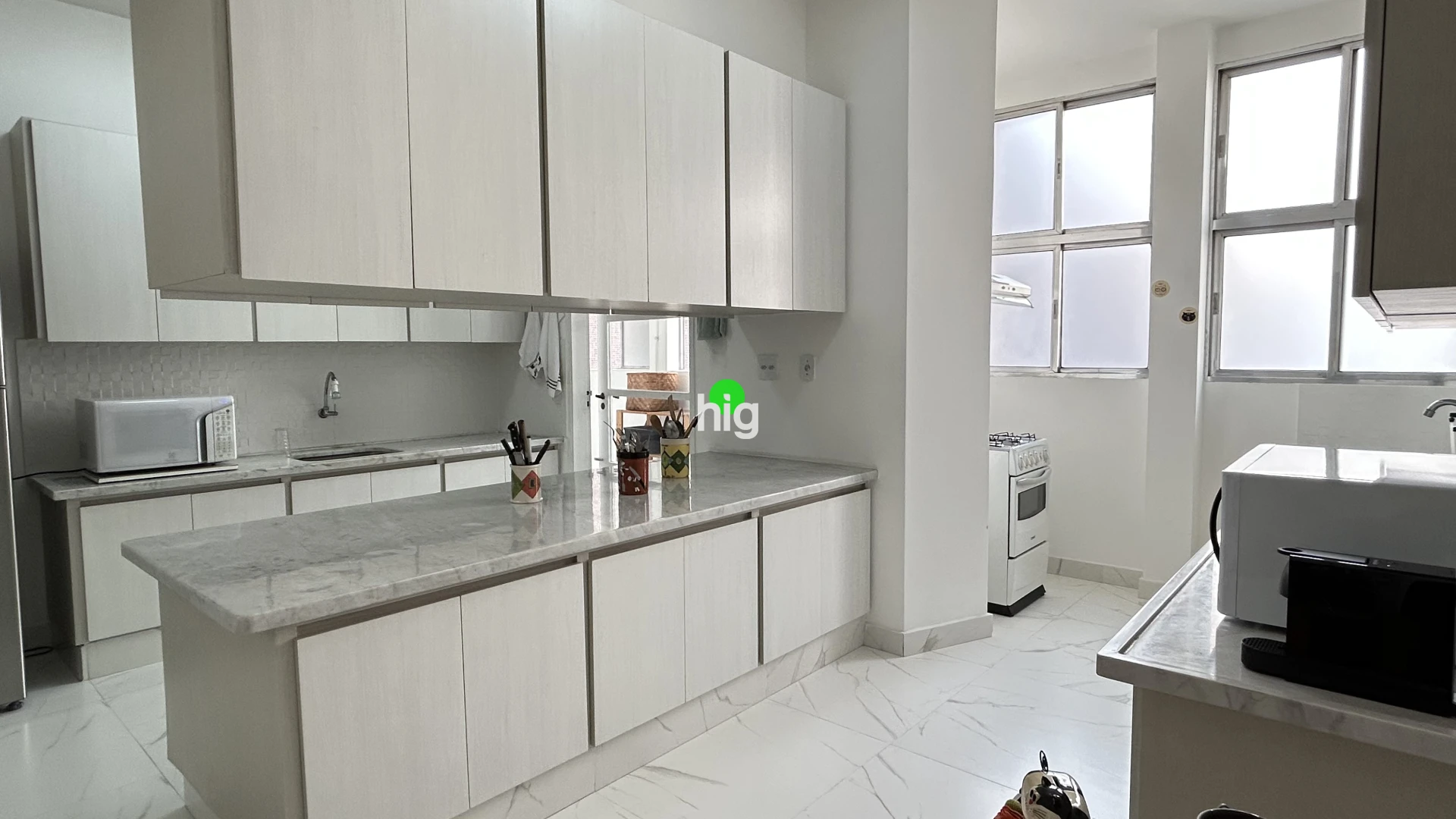 Na área íntima, são 4 amplos dormitórios, todos com varanda. Conta ainda com 2 dormitórios de serviço, facilmente adaptáveis para escritório, ateliê ou apoio funcional. A cozinha é espaçosa , com uma ilha central de época.