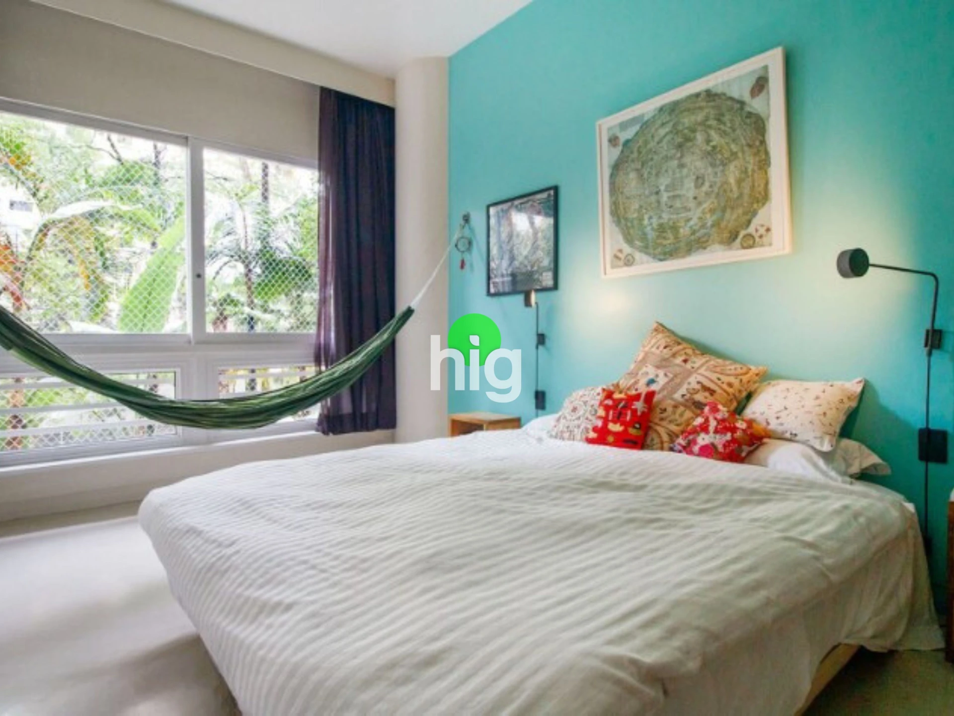 Apartamento espaçoso, com reforma contemporânea muito autêntica e estilosa, com janelões piso ao chão que proporcionam muita luz e vista verde para as árvores. Localizado em prédio ícone arquitetônico assinado por João Artacho Jurado, de 1958