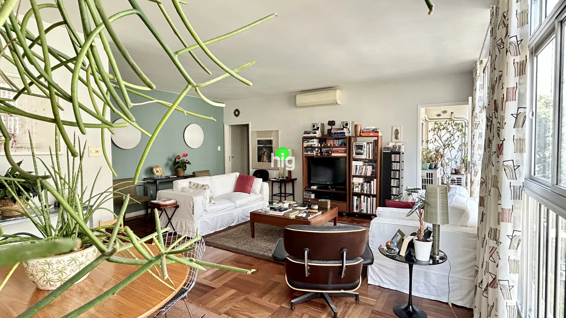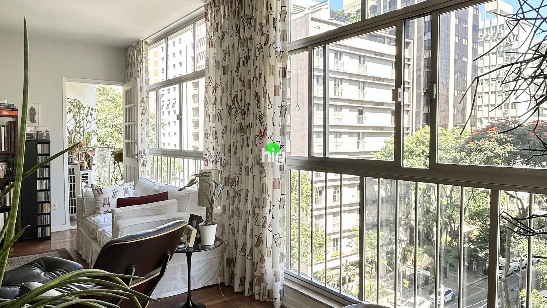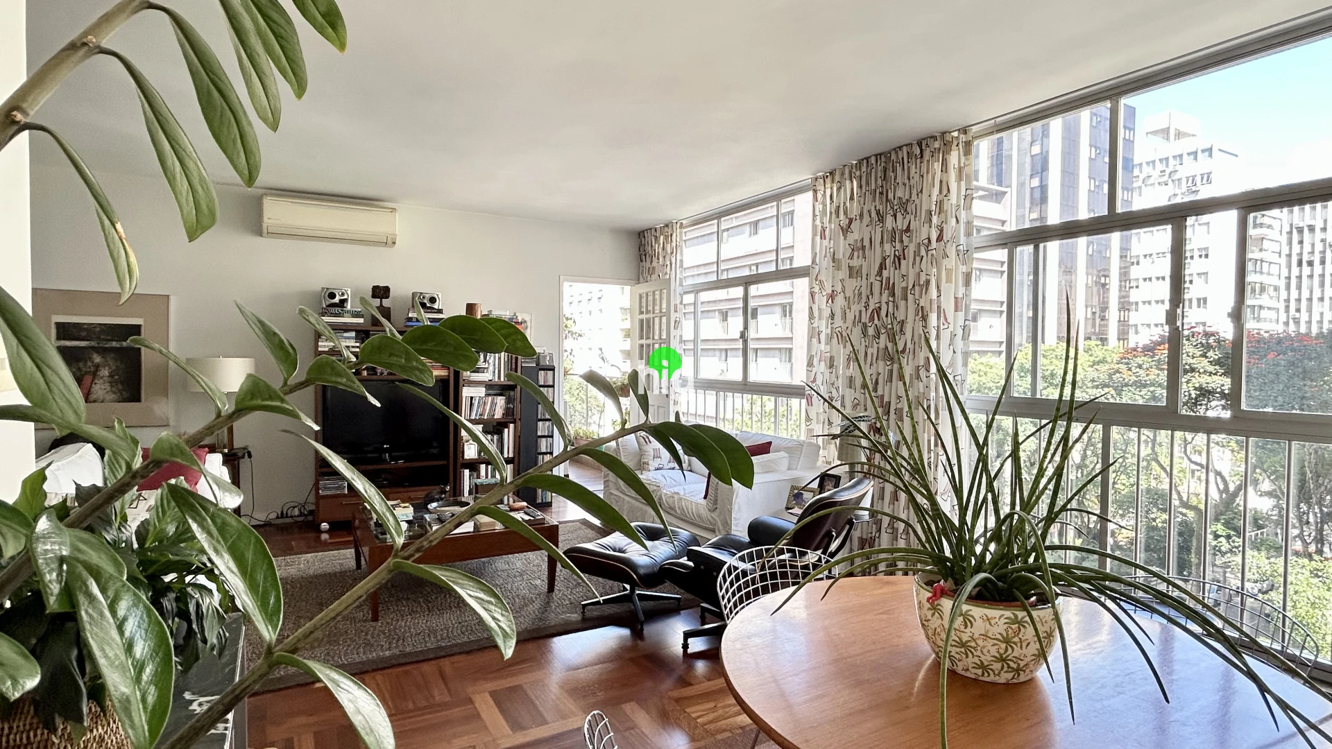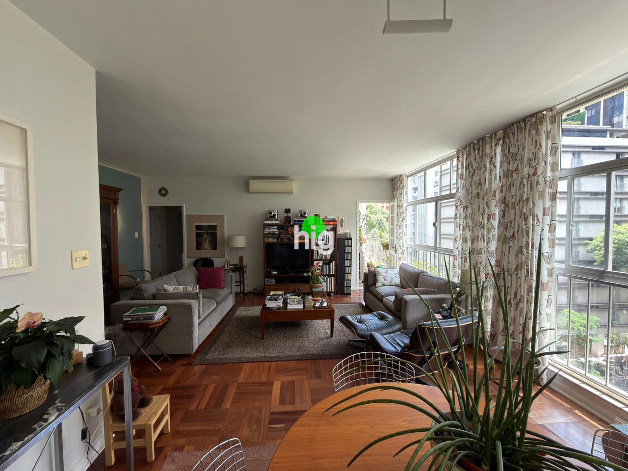 O apartamento traduz essa mesma elegância atemporal. Com 140 m² de área útil, apresenta uma planta bem resolvida, com três dormitórios (sendo uma suíte), além de uma ampla sala de estar iluminada por janelas do chão ao teto — um convite permanente à luz natural.