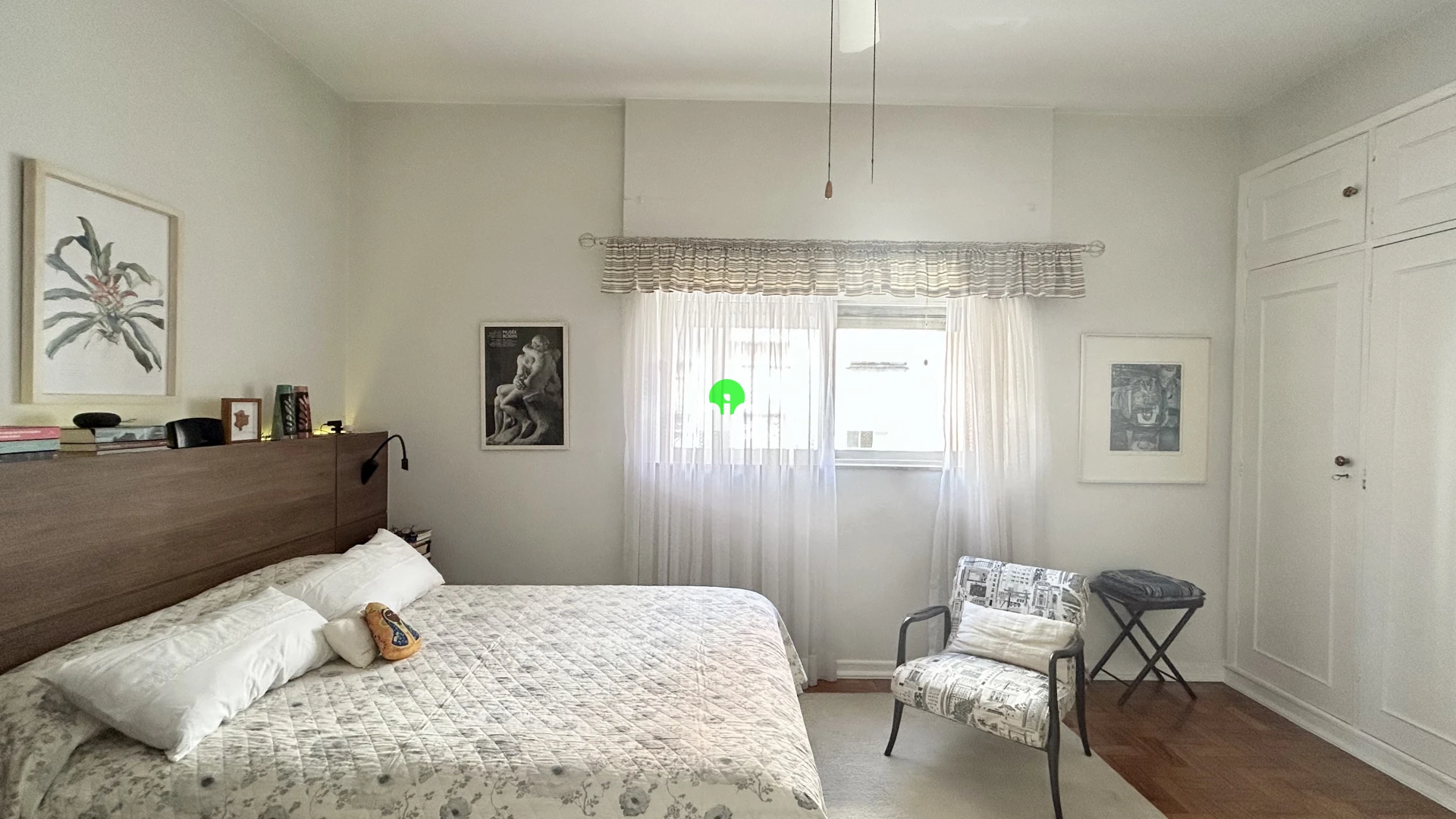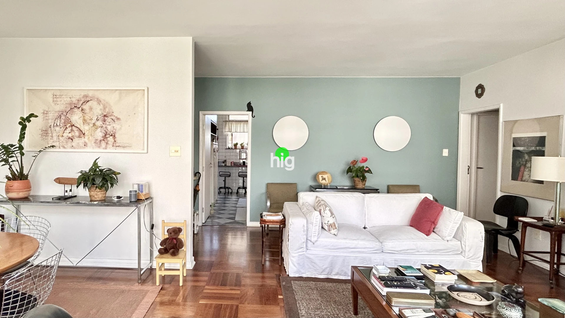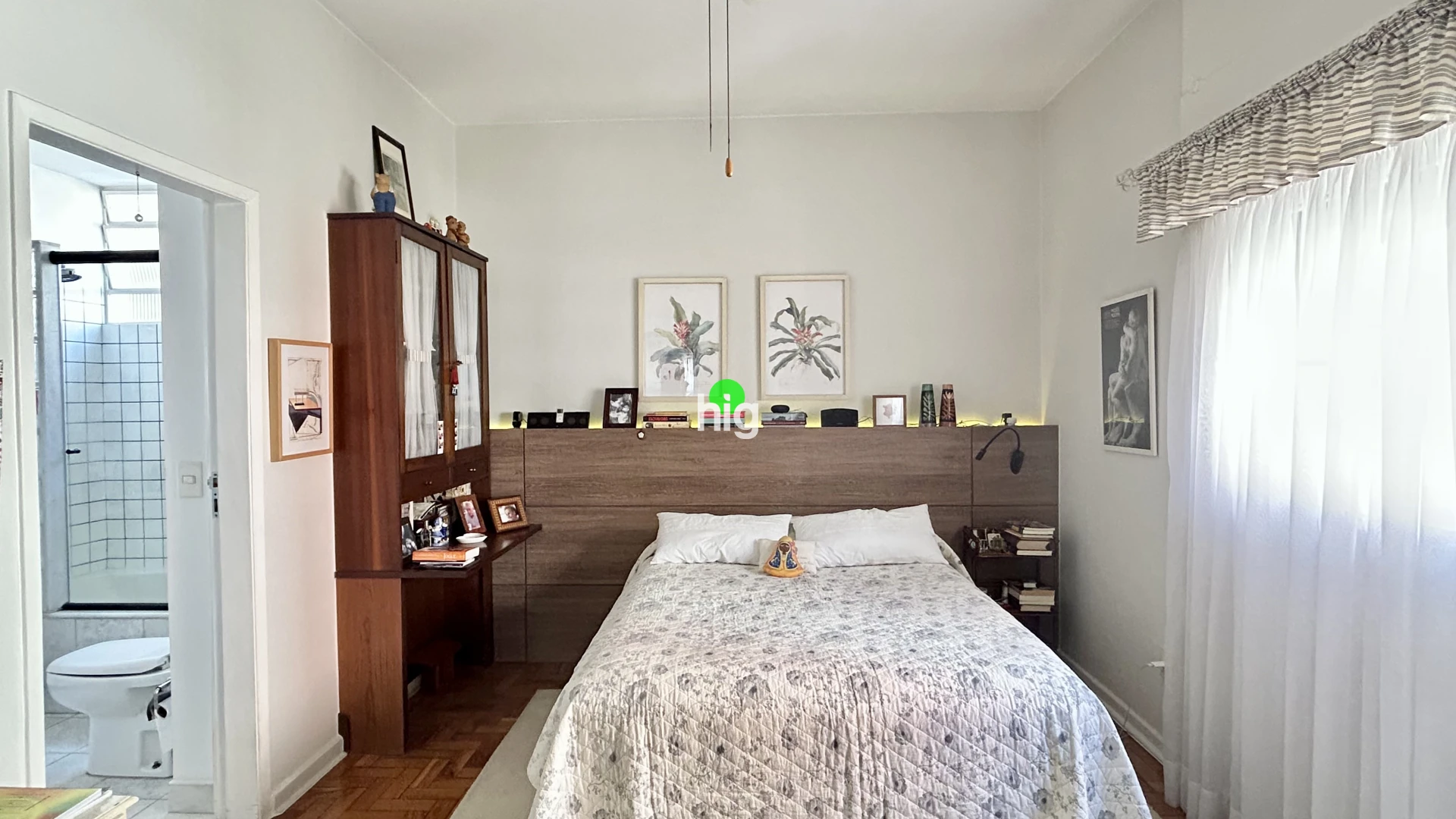 O apartamento traduz essa mesma elegância atemporal. Com 140 m² de área útil, apresenta uma planta bem resolvida, com três dormitórios (sendo uma suíte), além de uma ampla sala de estar iluminada por janelas do chão ao teto — um convite permanente à luz natural.
