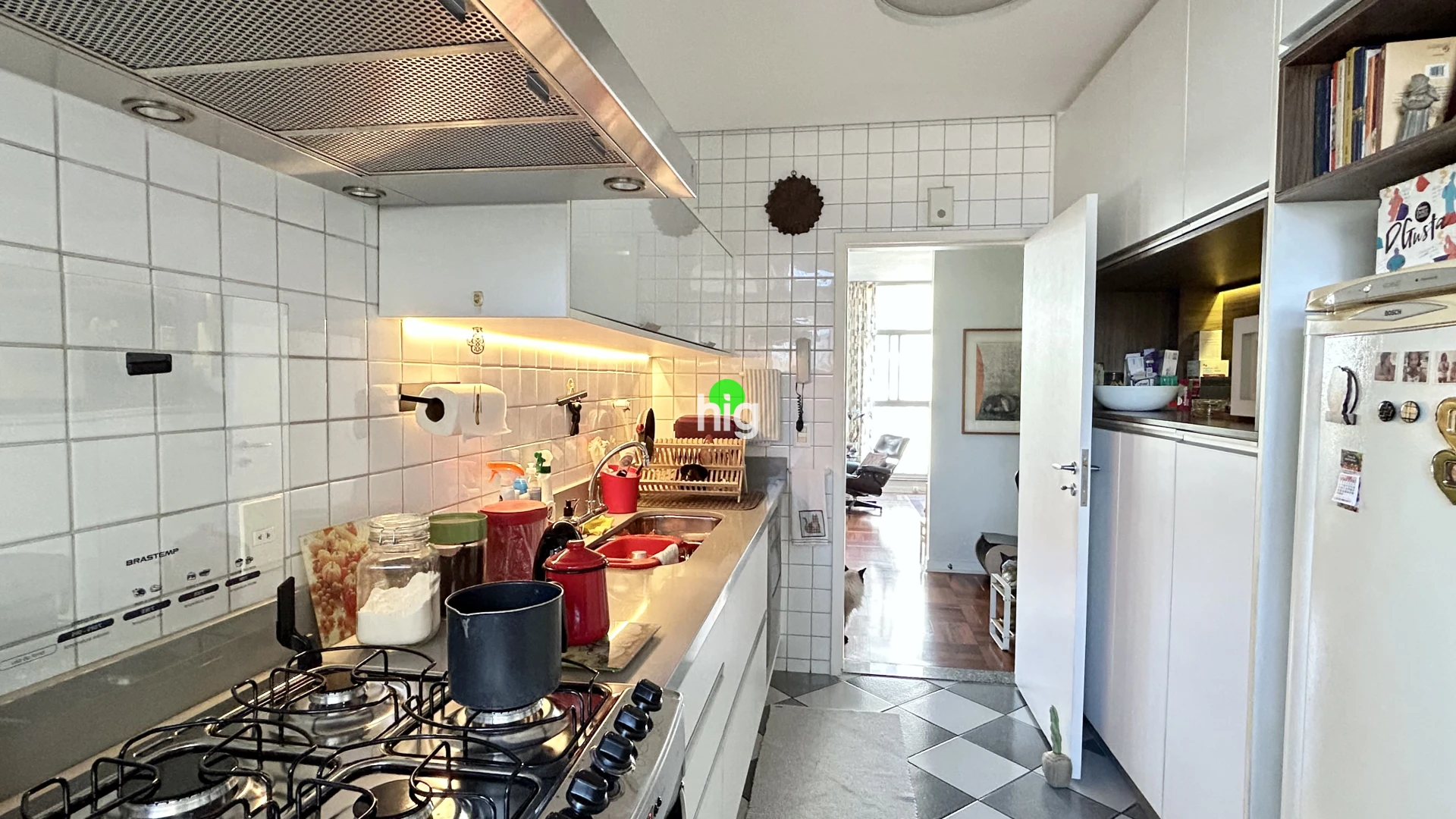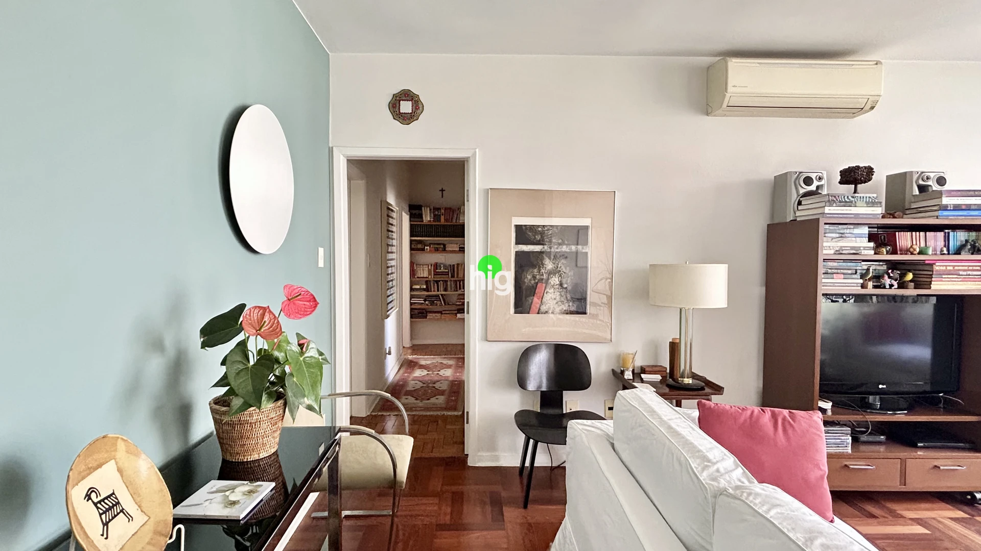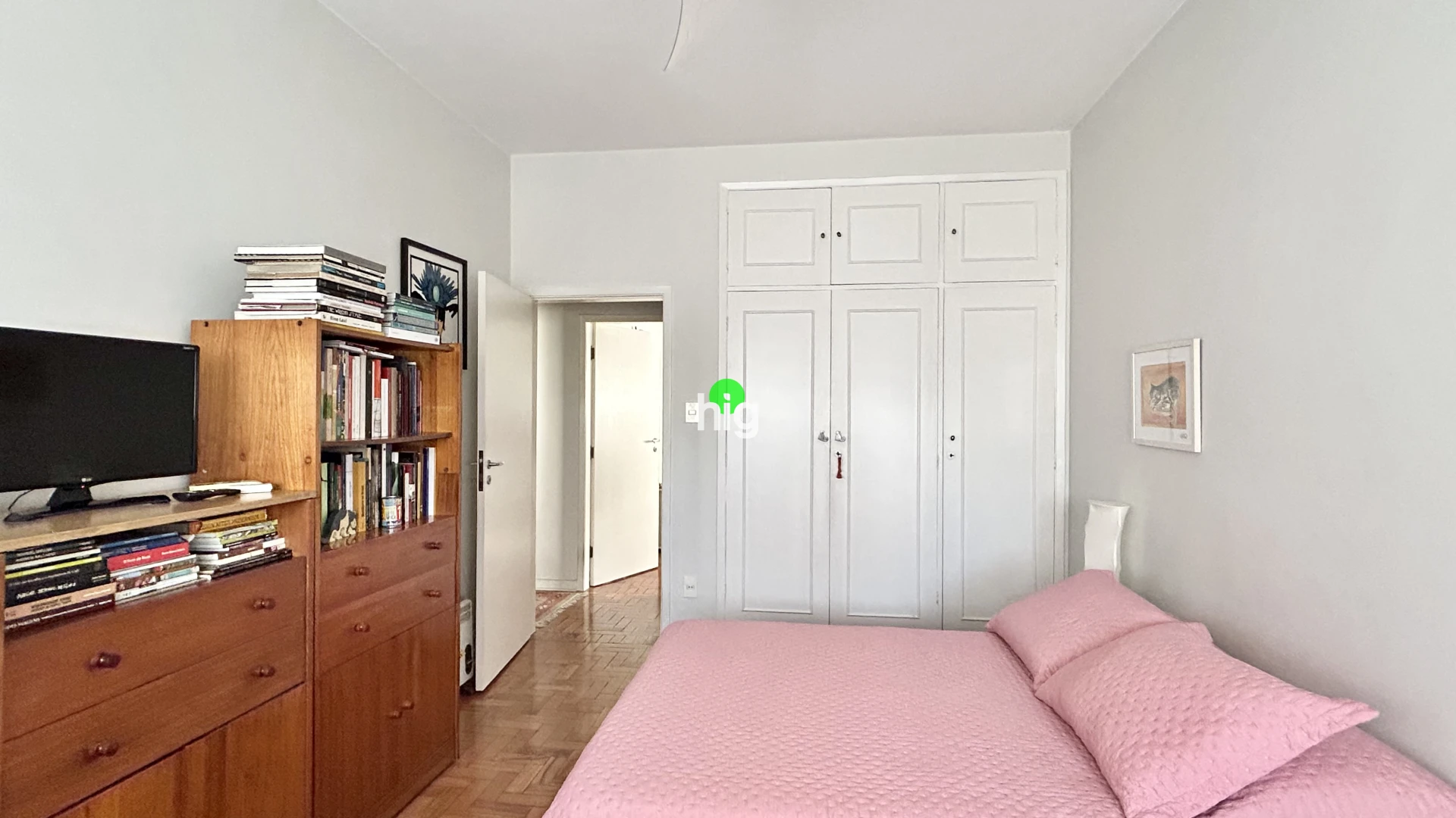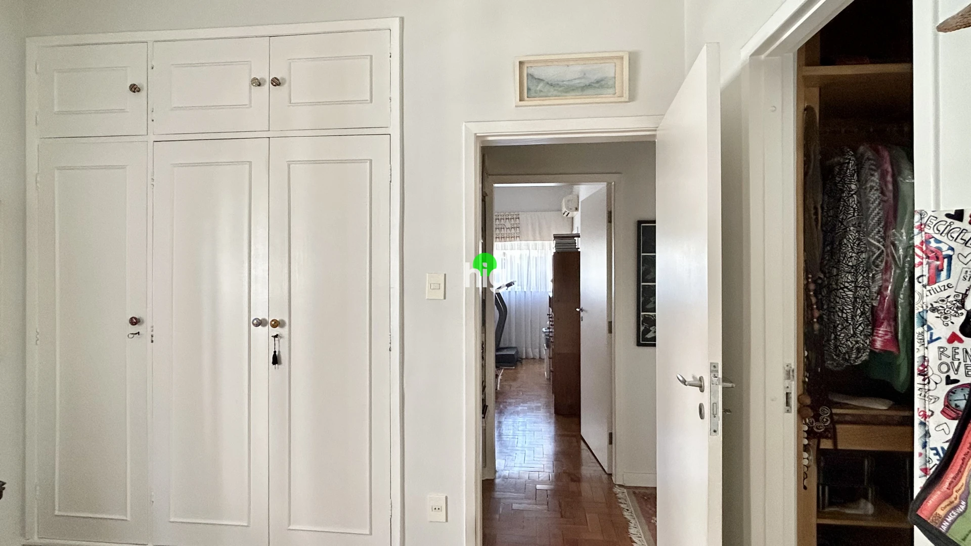 O apartamento traduz essa mesma elegância atemporal. Com 140 m² de área útil, apresenta uma planta bem resolvida, com três dormitórios (sendo uma suíte), além de uma ampla sala de estar iluminada por janelas do chão ao teto — um convite permanente à luz natural.