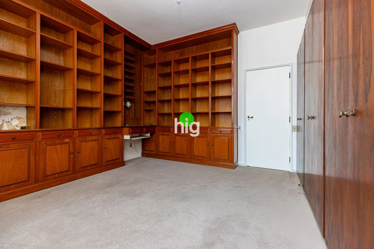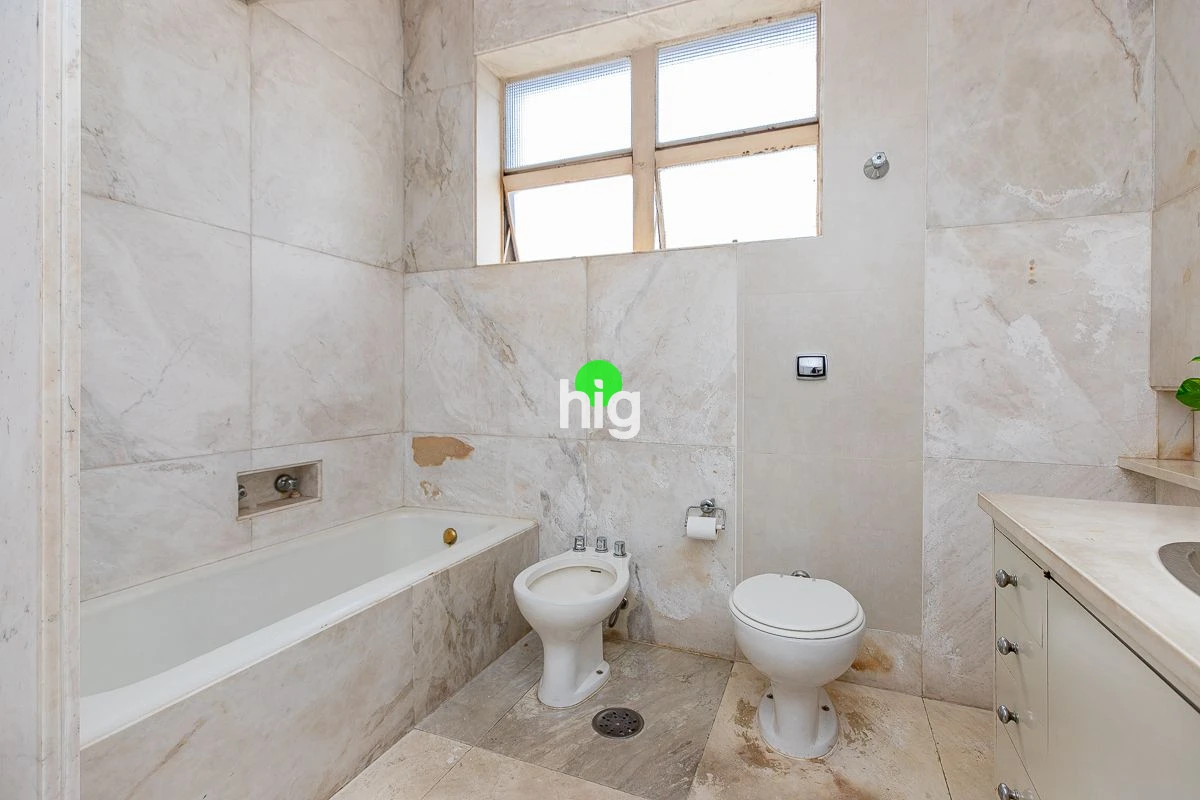 Este apartamento de 200 m² combina charme clássico com ambientes generosos. O amplo living exibe piso de madeira e grandes janelões que inundam o espaço de luz natural. A varanda oferece vista arborizada, perfeita para refeições ao ar livre ou leitura tranquila.
