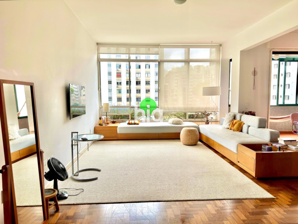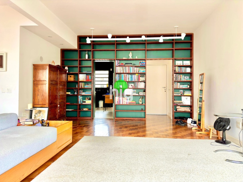 São 185m² de área em um imóvel totalmente reformado. Com piso de taco original e vigas em concreto aparente, dando um ar modernista/industrial. Na reforma, a cozinha foi aberta e integrada a sala, tornando o ambiente muito propício para receber visitas e deixar o ambiente bem sociável.