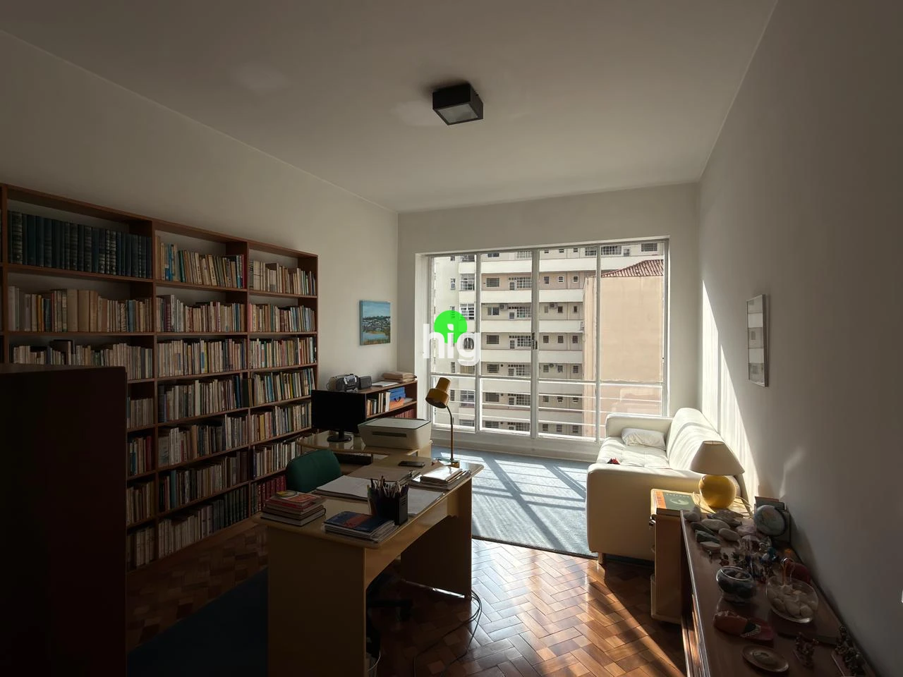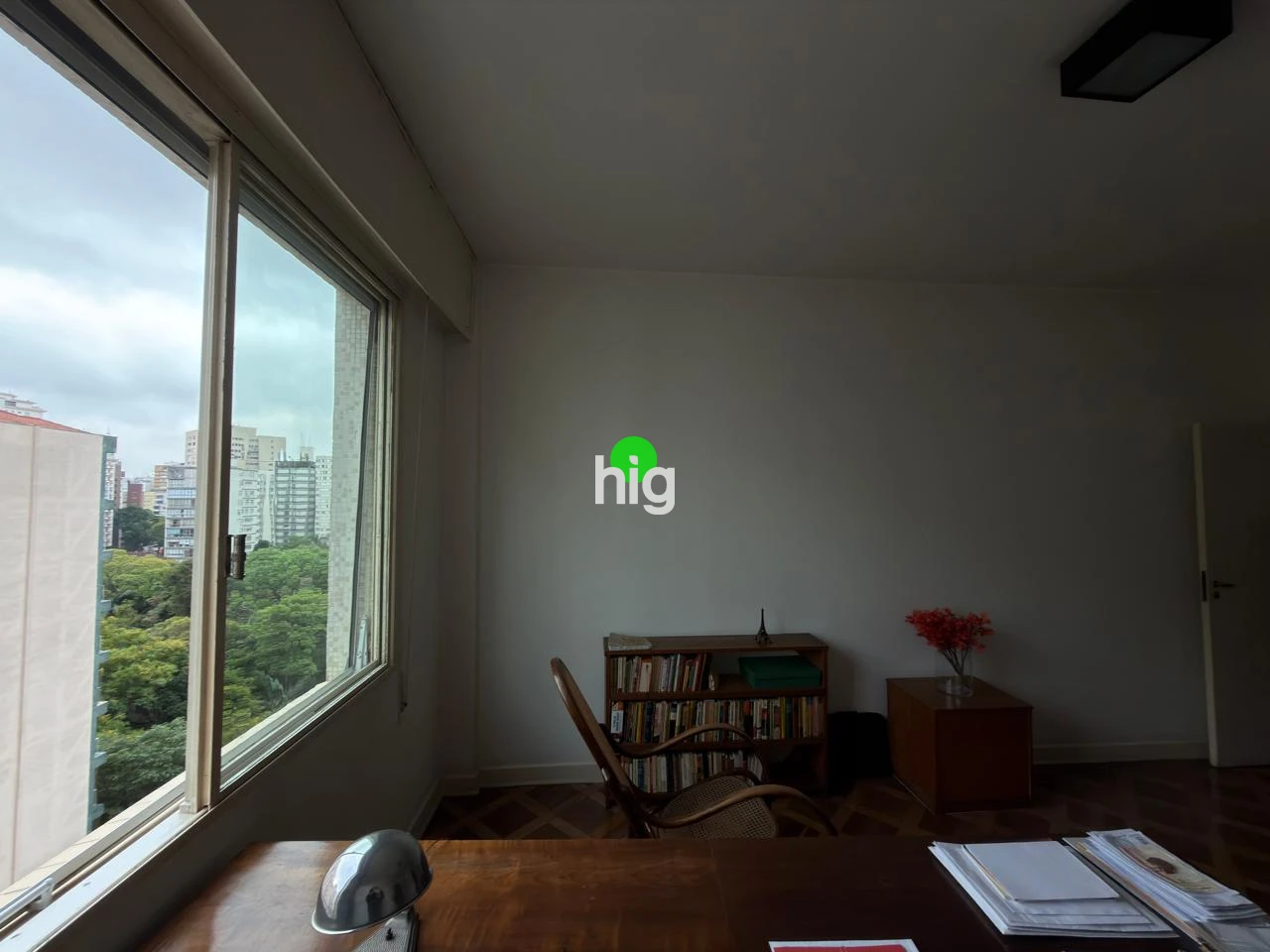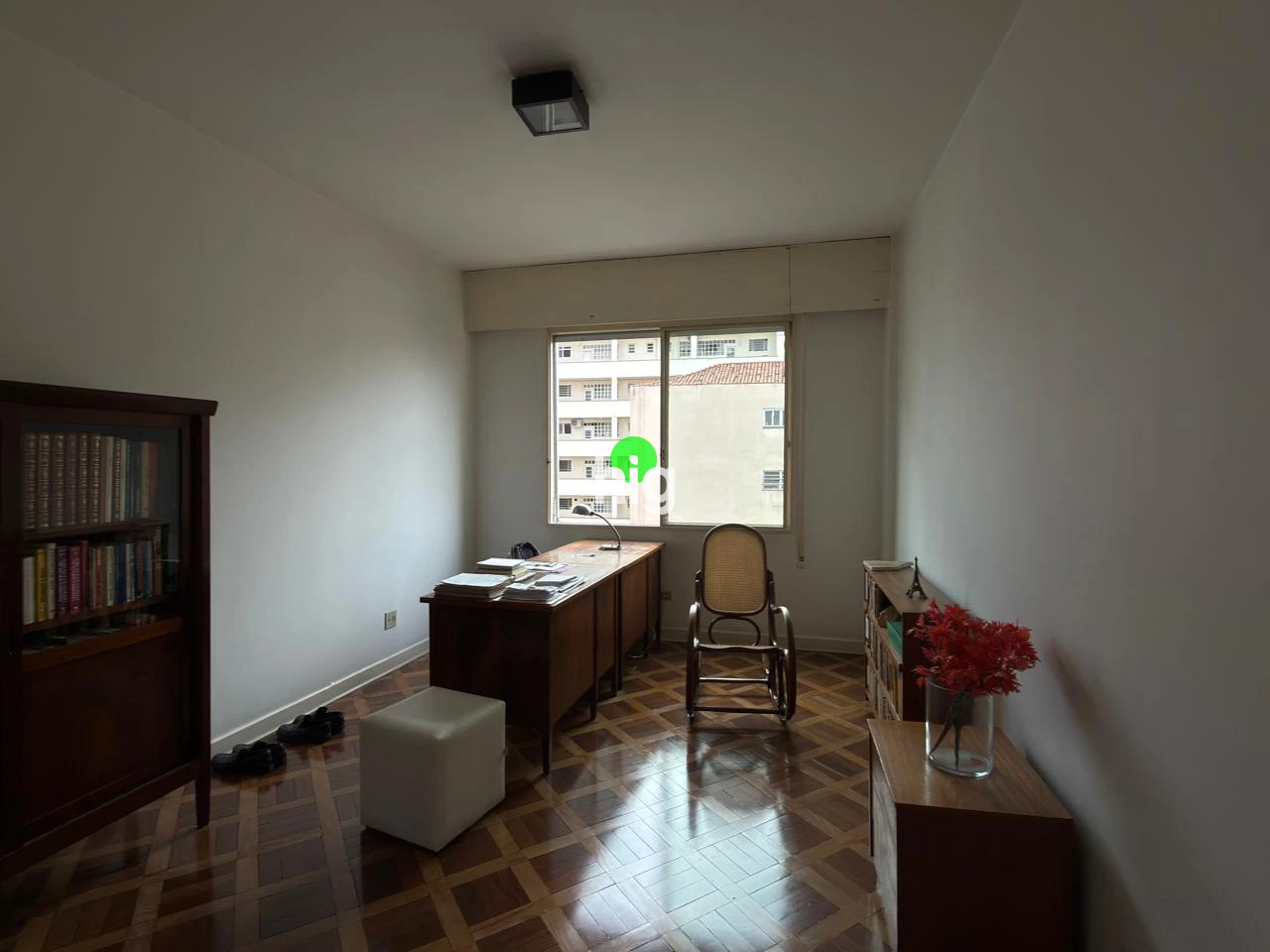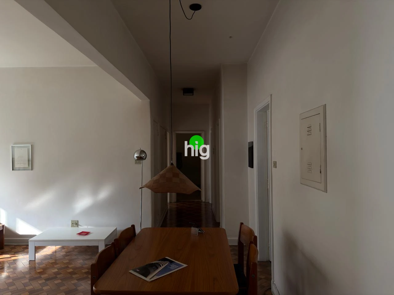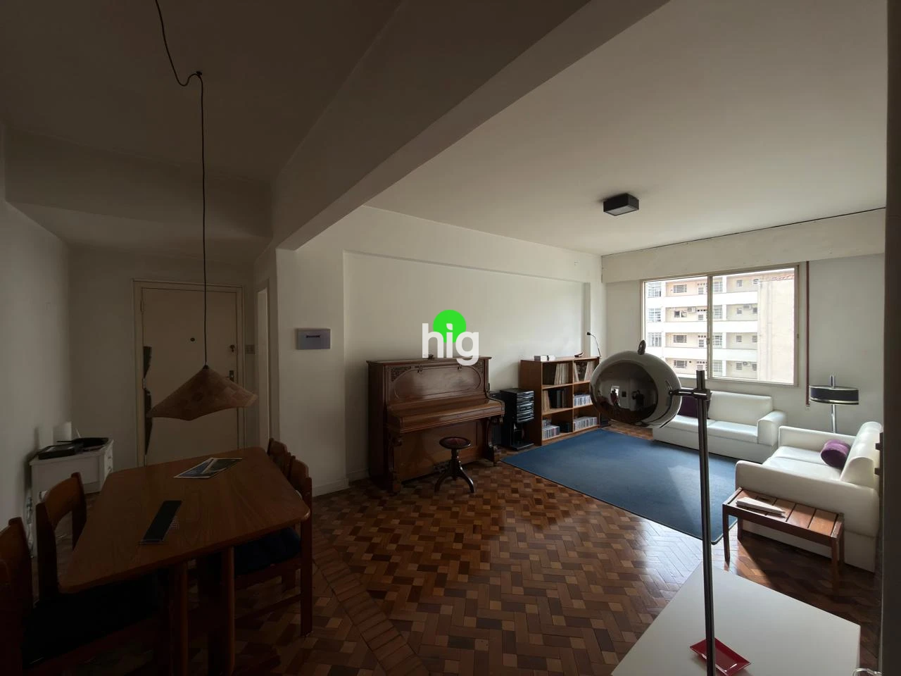 Este apartamento de 147 m² em Higienópolis integra charme histórico a ambientes amplos e bem iluminados. Localizado em edifício projetado pelo arquiteto Lindemberg, o imóvel preserva elementos originais, como piso em mosaico no living e janelões contínuos que proporcionam vista panorâmica da paisagem urbana.