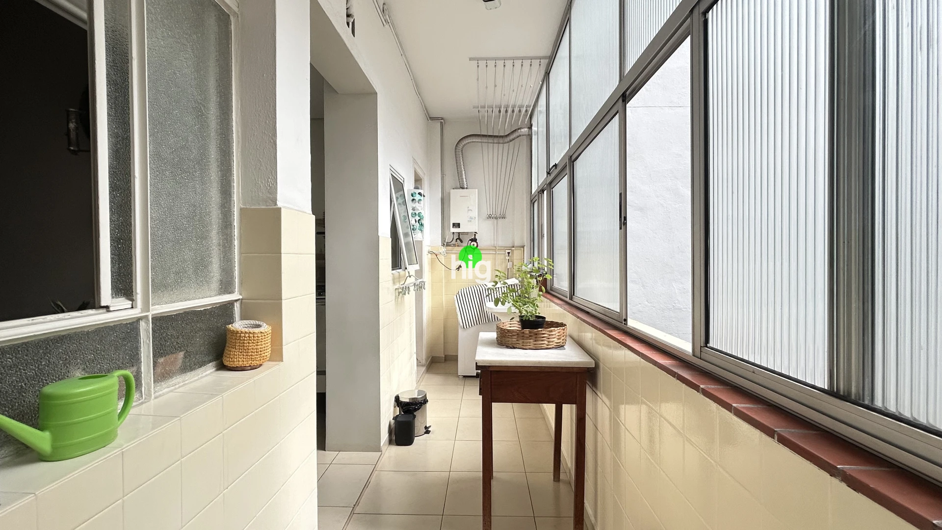 Com 90 m² bem distribuídos, o apartamento permanece totalmente original, conservando elementos que valorizam sua história — como os tacos de madeira e a charmosa varandinha, que traz leveza e ventilação ao espaço.
